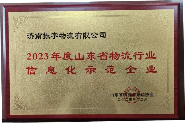 同時,振宇物流集團憑借在信息化方面的卓越表現和創新實踐 ,榮獲瞭(le)“2023年度山東省物流行業信息化示範企業”的榮譽稱(chēng)号!這一殊榮不僅是對公司技術創新和實力提升的認可,也爲我們未來企業的發展注入瞭(le)強大的動力!