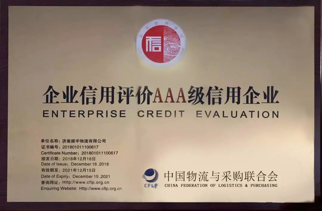 發(fā)布者:振宇物流 發(fā)布時間(jiān):2019-01-02 17:39:14        中國物流與採(cǎi)購聯合會信用專家委員會根據企業申報材料,按照《物流企業信用信息管理辦(bàn)法》《物流企業信用評級管理辦(bàn)法》等規定,經嚴格的評審程序,對申請參加第二十三批物流企業信用評價的企業的信用等級進行瞭(le)評價,正在飛(fēi)速發(fā)展的振宇物流再獲殊榮,被評爲“國家3A級信用企業”。